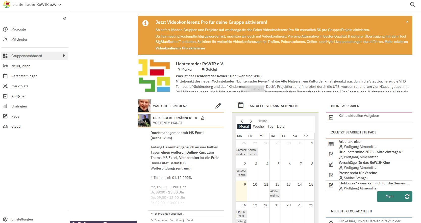 Der Verein betreibt eine Reihe von Internetportalen und bietet so den Mitgliedern transparente, Beteiligungsmöglichkeiten und schont gleichzeitig die Ehrenamtlichen, die jetzt schon sehr viel Zeit in unser Gemeinschaftsleben stecken.